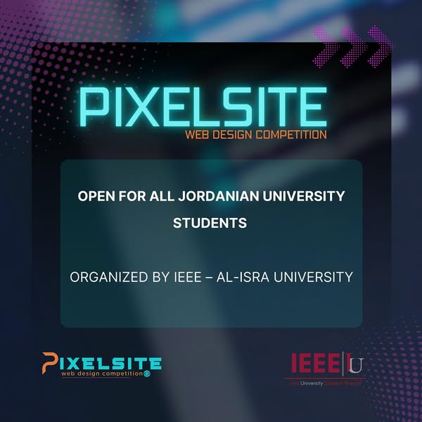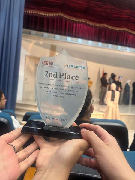 وذلك بمناسبة فوز فريقهن Web Bases بالمركز الثاني 🥈 في مسابقة PixelSite التي نظمتها IEEE-IU، بمشاركة واسعة من جامعات المملكة الأردنية الهاشمية الحكومية والخاصة.