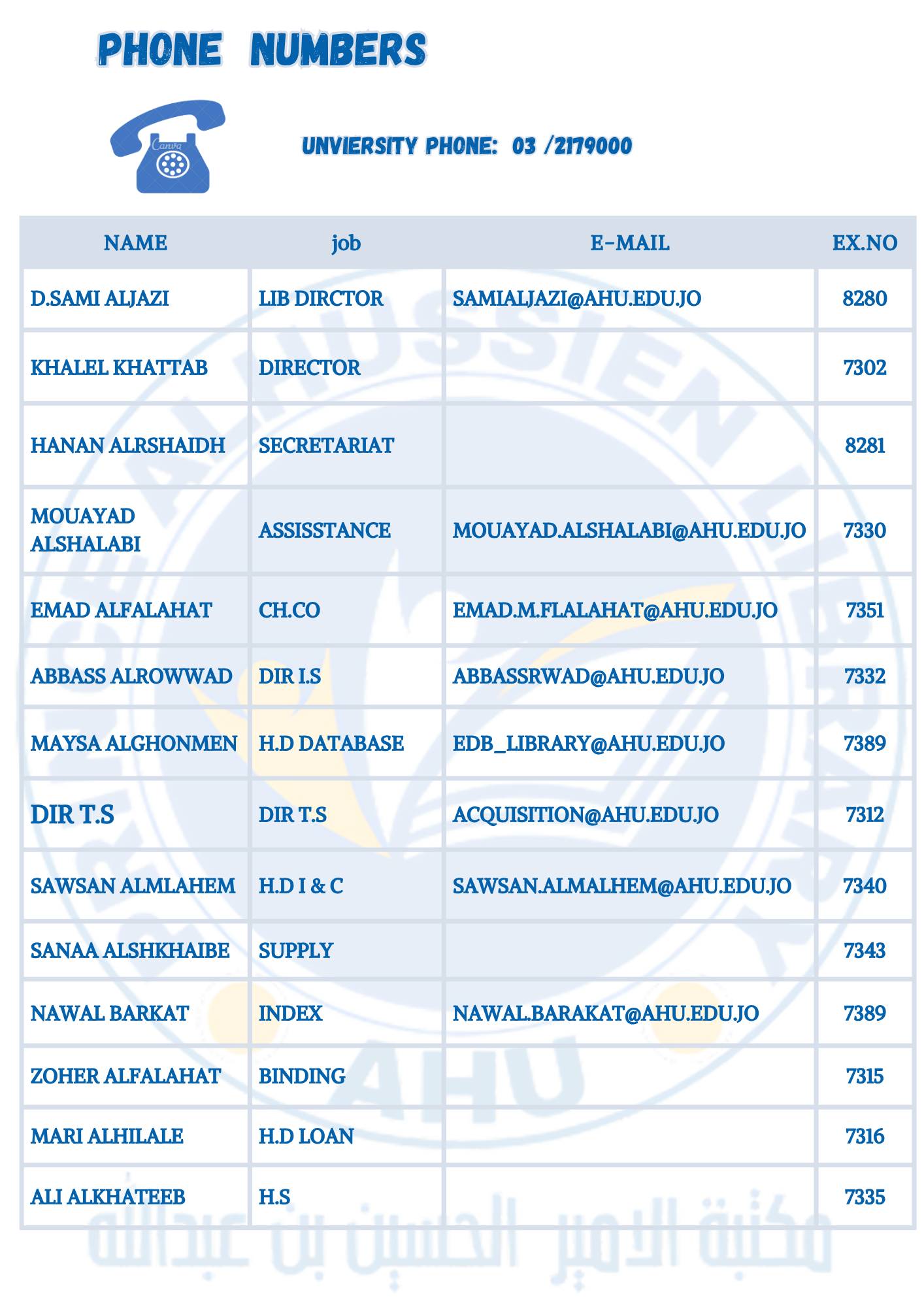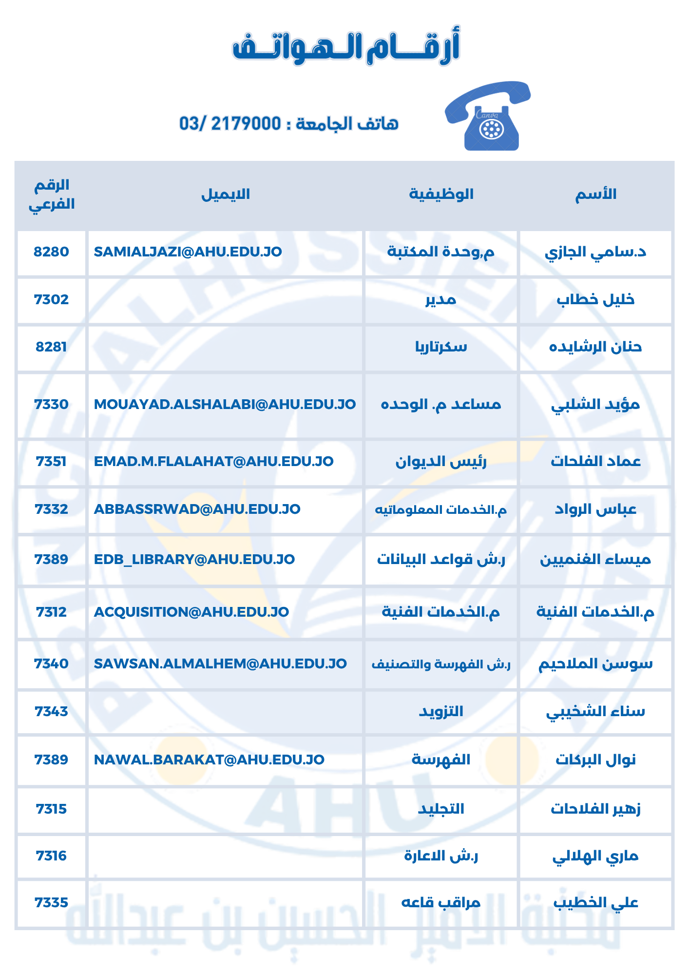 الهيكل التنظيمي أرقام الهواتف