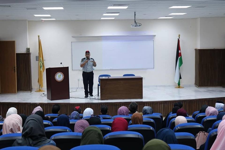 تطرق مدير العمليات في مديرية دفاع مدني معان الرائد يسري البدور إلى الدور المهم الذي تقوم به كوادر الدفاع المدني بشكل عام، في عمليات إنقاذ الأرواح، والمحافظة على الممتلكات للمواطنين، وضمن كوادر مؤهلة تأهيل عالٍ وأجهزة متطورة، كما تحدث عن الدقة والسرعة في الإستجابة لأي طارئ قد يحدث في أي مكان في المملكة وبسرعة قصوى تعدت الدرجات العالمية في ذلك. كما تم على هامش المحاضرة عرض لبعض العربات المستخدمة في عمليات الإنقاذ وإطفاء الحريق، وقام أفراد الدفاع المدني بشرح لطلبة الجامعة وبشكل عملي عن هذه المركبات.
